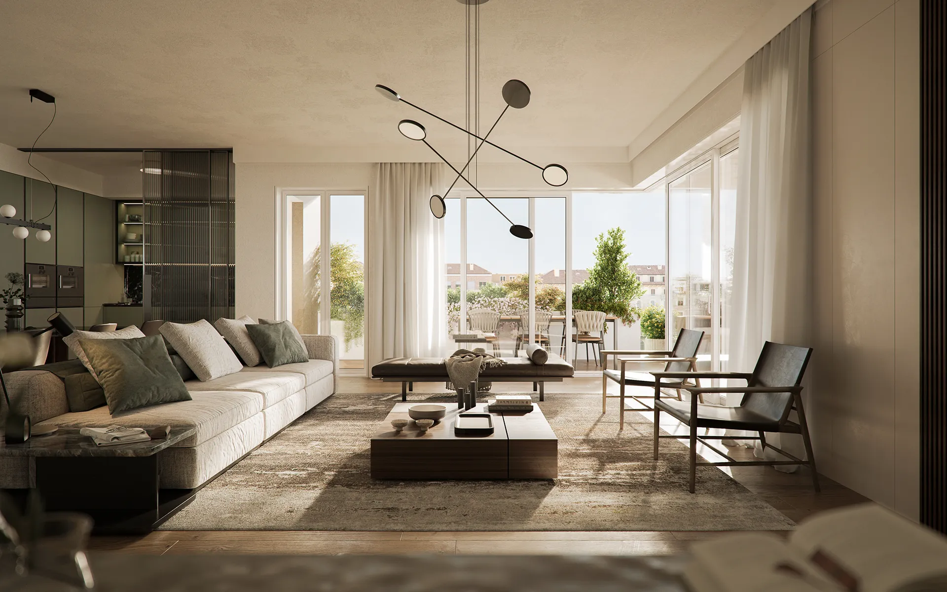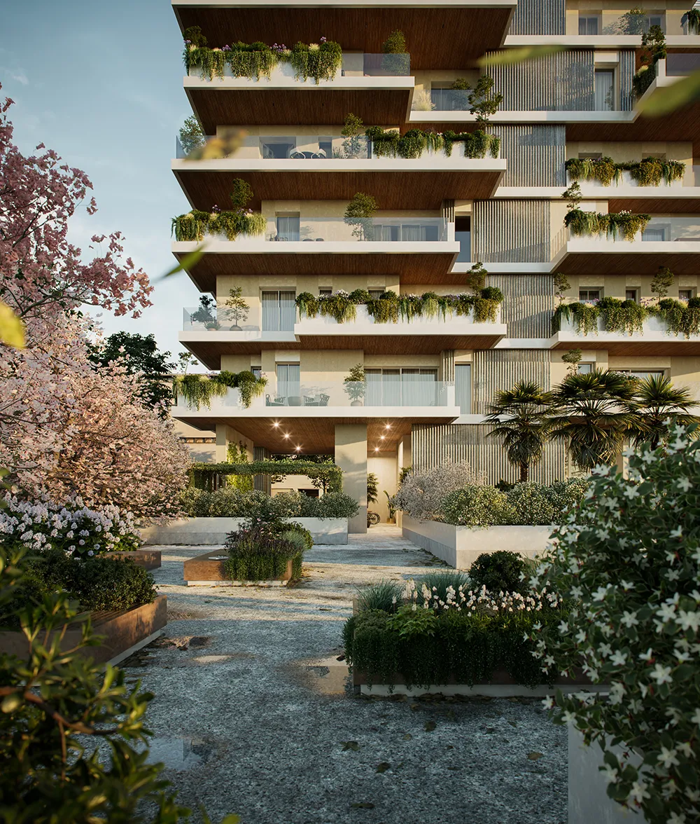Questo progetto esclusivo si distingue per la sua facciata moderna, giardini pensili abitabili e ampie finestre che regalano una luminosità senza pari.